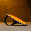 The OBLIQUE ring defies expectation through its intelligent, avant-garde design. A sleek, matte black band supports an assertive oval platform, appearing at first as a minimalist plane. Yet, as it graces the finger, its genius is revealed: the platform naturally tilts, assuming a dynamic 45-degree OBLIQUE angle, offering a unique, elevated perspective on the vibrant, luminous colorful resin it cradles.